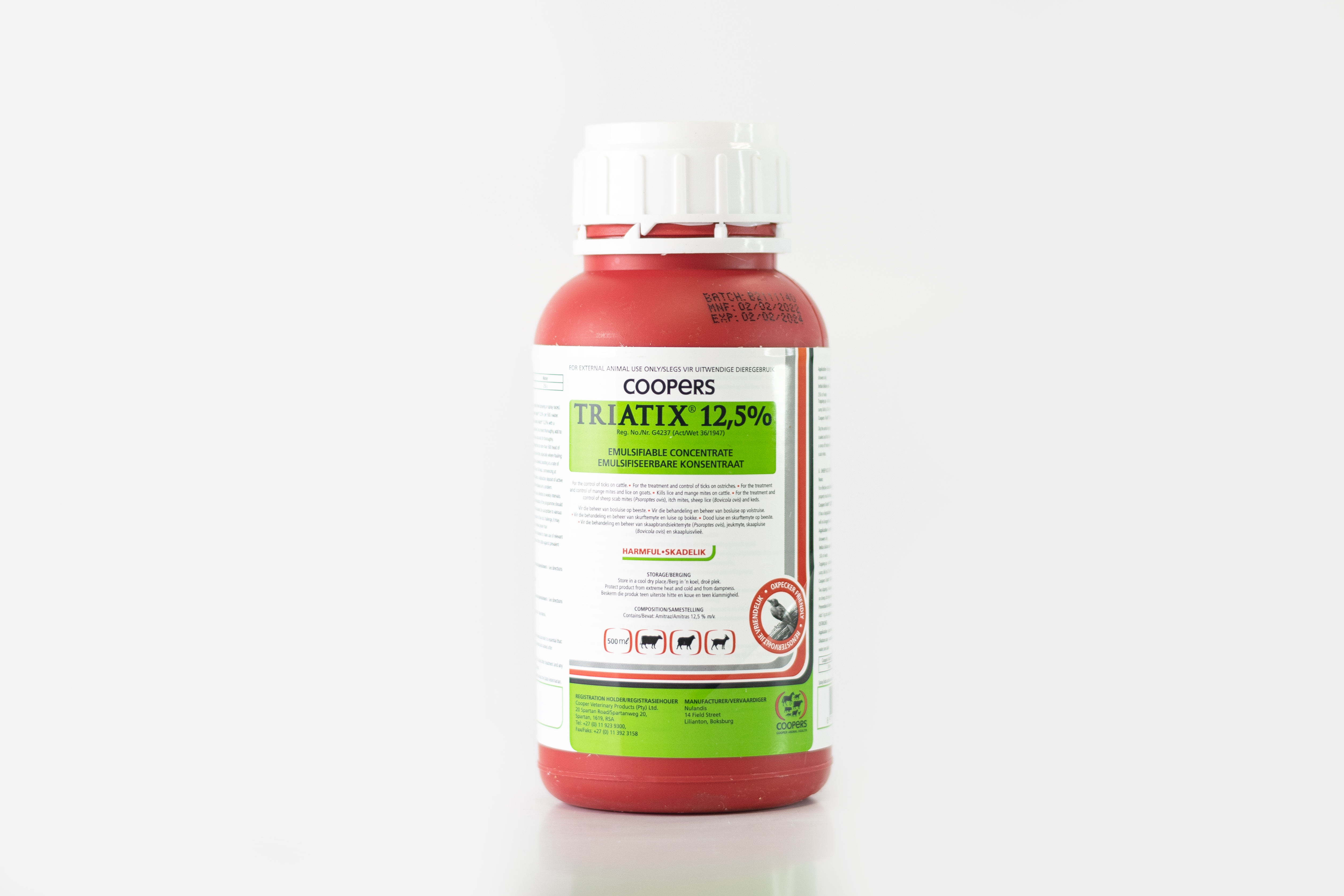 | Used as a cattle, sheep and goat dip, as well as an ostrich and cattle spray for the prevention and treatment of ectoparasite infestations. |
